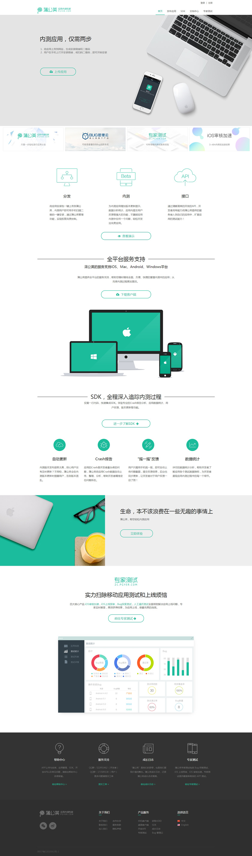 Project Description 西安点测网络科技有限公司旗下的『蒲公英』品牌,是专为 iOS、Android 开发者提供的免费用应用内测、托管的平台,旨在解决开发者将应用分发给内测用户时的繁杂、低效的问题。